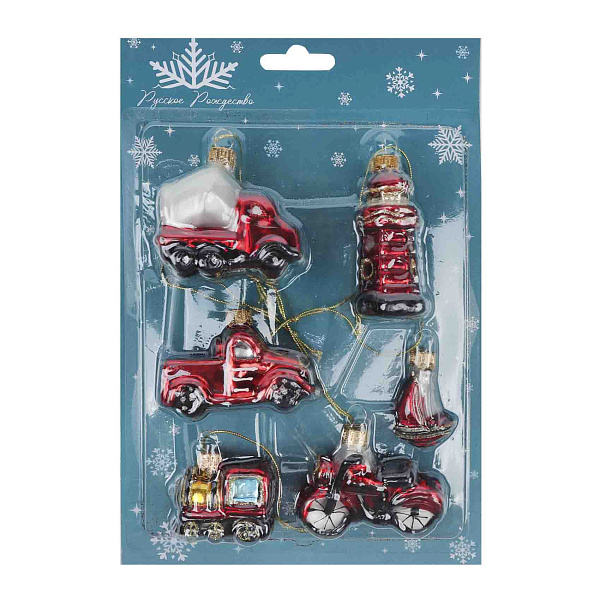 Набор из 6 миниатюрных елочных игрушек высотой 7 см, выполненных из стекла в классическом стиле. В комплект входят фигурки транспортных средств, таких как маяк, пароход, грузовик и другие, каждая игрушка тщательно проработана и украшена яркой, сочной раскраской с блестящим покрытием. Игрушки оснащены золотистыми петельками для удобного подвешивания на елку. Этот набор создает праздничную атмосферу и станет оригинальным украшением новогоднего декора.