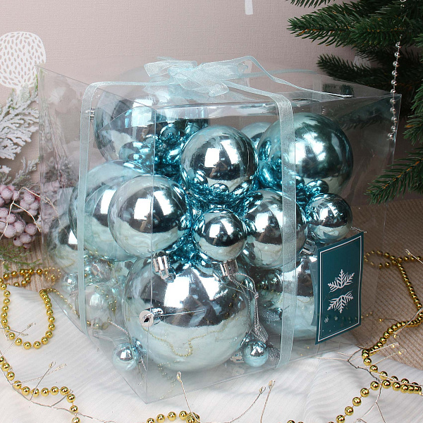 Набор из 50 елочных шаров нежного голубого цвета с глянцевым покрытием, выполненных из легкого пластика диаметром 2-10 см. Шары отличаются ровной и блестящей поверхностью, придающей интерьеру мягкое сияние и элегантность. Каждый шар оснащен крепким колпачком с петлей для удобного и надежного подвешивания на елке или в декоративных композициях. Этот набор идеально подойдет для создания стильного и утонченного новогоднего декора.
