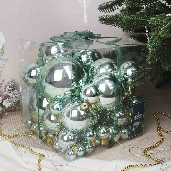 Набор из 50 елочных шаров мятного цвета с глянцевым покрытием, выполненных из легкого пластика диаметром 2-10 см. Шары обладают ярким и ровным блестящим покрытием, придающим интерьеру зимний свежий оттенок и праздничное сияние. Каждый шар оснащен крепким колпачком с петлей для удобного и надежного подвешивания на елке или в декоративных композициях. Этот набор идеально подойдет для создания стильного и освежающего новогоднего декора.