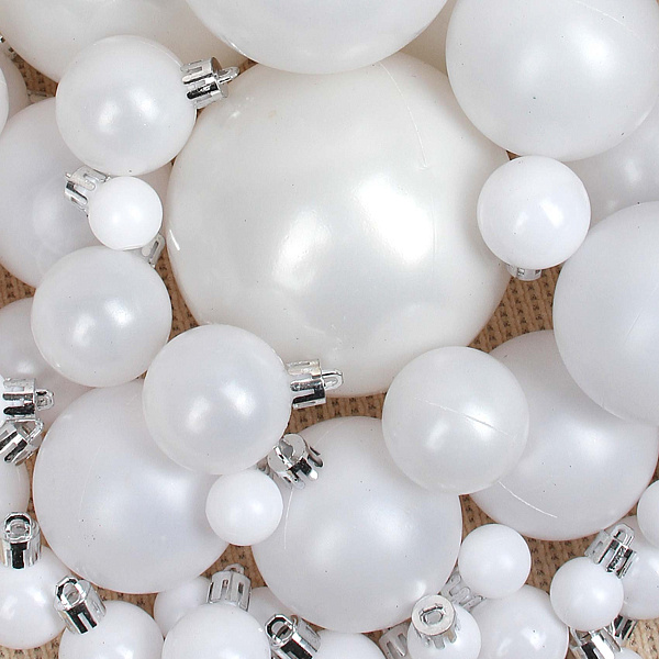 Набор елочных шаров глянцевый перламутровый белый 2-10см 50шт