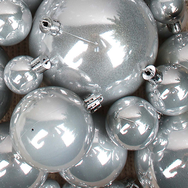 Набор елочных шаров глянцевый перламутровый серебристый 2-10см 50шт