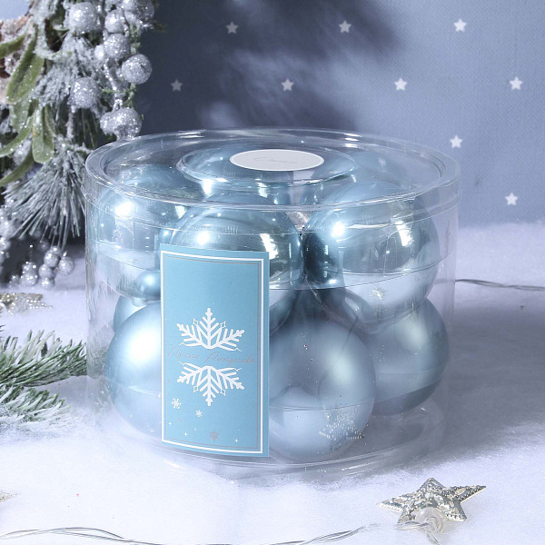 Голубой цвет шаров идеально сочетается с праздничными огоньками и зеленью елки, создавая уютную и торжественную атмосферу. Легкий вес стеклянных украшений упрощает их размещение и распределение по ветвям.