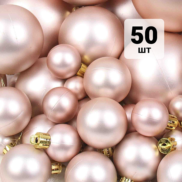 Набор новогодних украшений — изящный комплект из 50 шаров в нежном пудровом матовом оттенке диаметром от 2 до 10 см. Матовая поверхность придаёт украшениям мягкое, приглушённое сияние, создавая атмосферу тепла и романтики в праздничном интерьере. Лёгкие пластиковые шары оснащены надёжными колпачками с петлями для удобного и прочного крепления на ёлке или в декоративных композициях. Этот набор станет прекрасным выбором для создания утончённого и гармоничного оформления, подчёркивая нежность и стиль декора.
