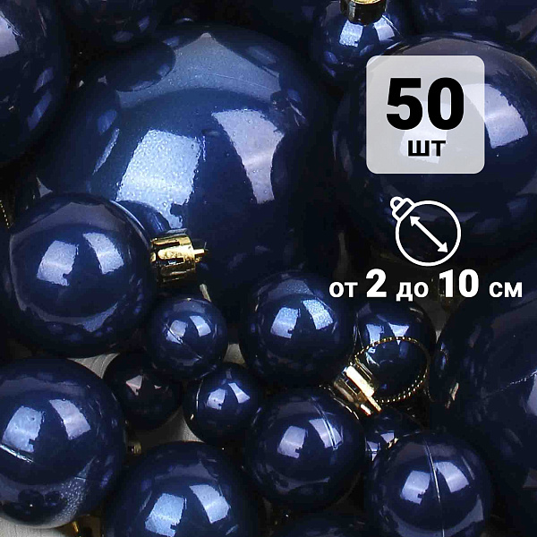 Набор из 50 елочных шаров с перламутровым покрытием насыщенного синего цвета, выполненных из легкого пластика диаметром 2-10 см. Шары обладают мягким перламутровым блеском, который придает интерьеру изысканный мягкий сияющий эффект. Каждый шар оснащен крепким колпачком с петлей для удобного и надежного подвешивания на елке или в декоративных композициях. Этот комплект отлично подойдет для создания элегантного и утонченного новогоднего декора.