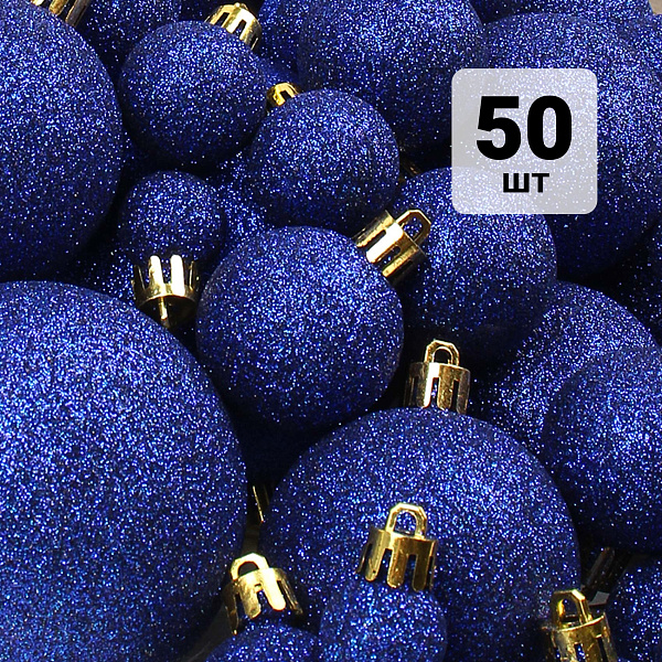 Набор елочных шаров с глиттерным покрытием синий 50шт