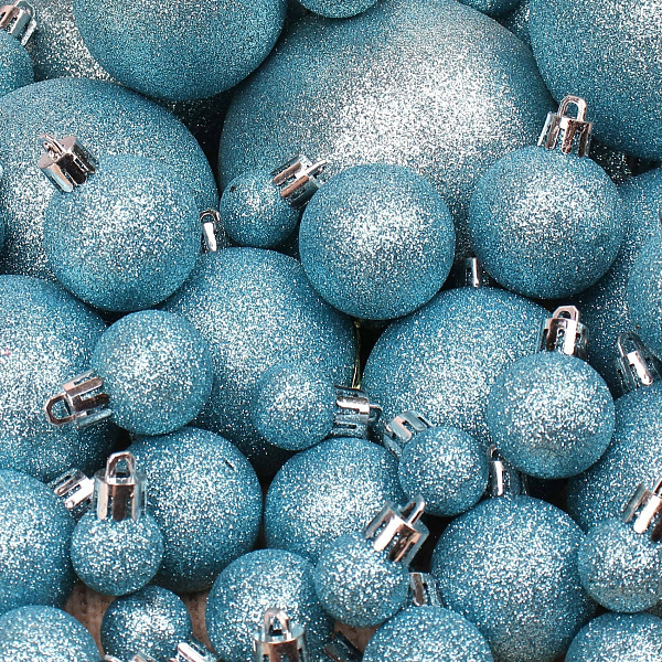 Набор новогодних украшений — изящный комплект из 50 шаров голубого цвета с блестящим глиттерным покрытием диаметром от 2 до 10 см. Искрящаяся поверхность придаёт шарам нежное мерцание и праздничное сияние, создавая атмосферу волшебства и чистоты в праздничном интерьере. Легкие пластиковые шары оснащены креплениями с петлями для удобного и надёжного подвешивания на ёлке и в декоративных композициях. Этот набор станет прекрасным выбором для создания яркого и свежего новогоднего декора, подчёркивая элегантность и легкость оформления.