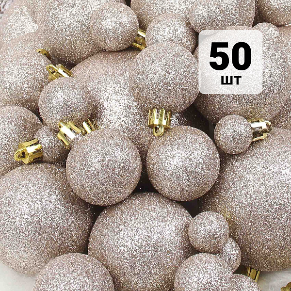 Набор новогодних украшений — элегантный комплект из 50 шаров в нежном пудровом оттенке с эффектным глиттерным покрытием диаметром от 2 до 10 см. Искрящаяся поверхность придаёт шарам праздничное мерцание и утончённое сияние, создавая волшебную атмосферу в интерьере. Лёгкие пластиковые шары оснащены удобными креплениями с петлями для лёгкого и надёжного подвешивания на ёлке или в декоративных композициях. Этот набор станет идеальным выбором для тех, кто стремится добавить в праздничный декор изысканности и блеска.