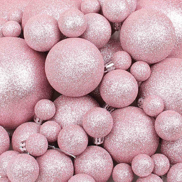 Набор новогодних украшений — блестящий комплект из 50 шаров розового цвета с глиттерным покрытием диаметром от 2 до 10 см. Искрящаяся поверхность придаёт шарам праздничное мерцание и волшебное сияние, создавая атмосферу радости и торжества в праздничном интерьере. Лёгкие пластиковые шары оснащены креплениями с петлями для удобного и надёжного подвешивания на ёлке и в декоративных композициях. Этот набор станет прекрасным выбором для создания яркого и стильного новогоднего декора, подчёркивая красоту и нежность оформления.