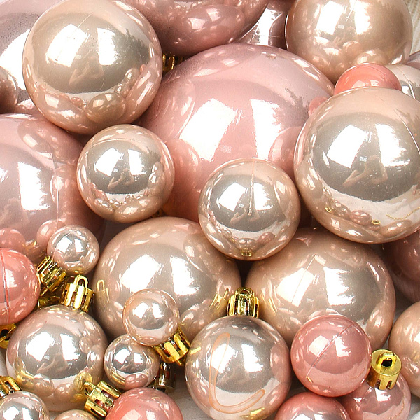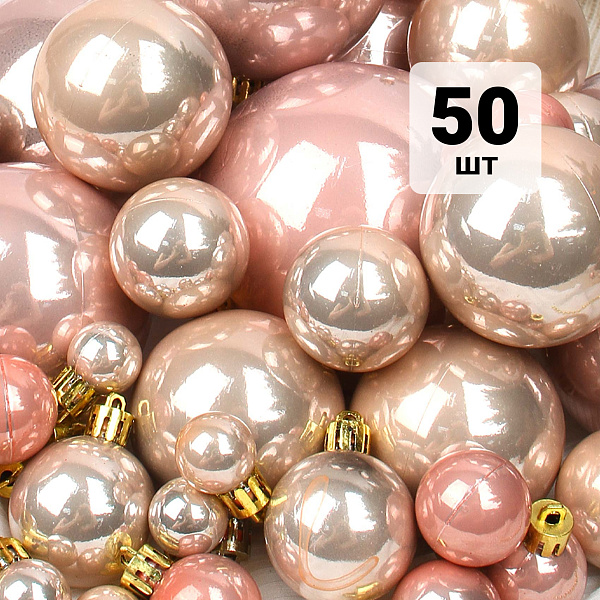 Набор елочных шаров с перламутровым эффектом нежно-розовые 50шт 2-10см