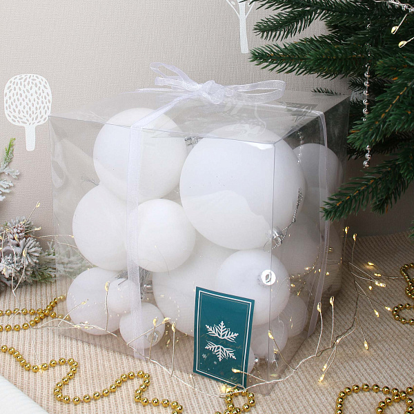 Набор из 50 елочных шаров белого цвета с велюровым покрытием, выполненных из легкого пластика диаметром 2-10 см. Шары обладают мягкой бархатистой поверхностью, создающей ощущение уюта и нежности, что придает праздничному интерьеру изысканность и теплоту. Каждый шар оснащен надежным крепким колпачком с петлей для удобного и комфортного подвешивания на елке или в декоративных композициях. Этот комплект станет отличным выбором для создания элегантного и стильного новогоднего декора.