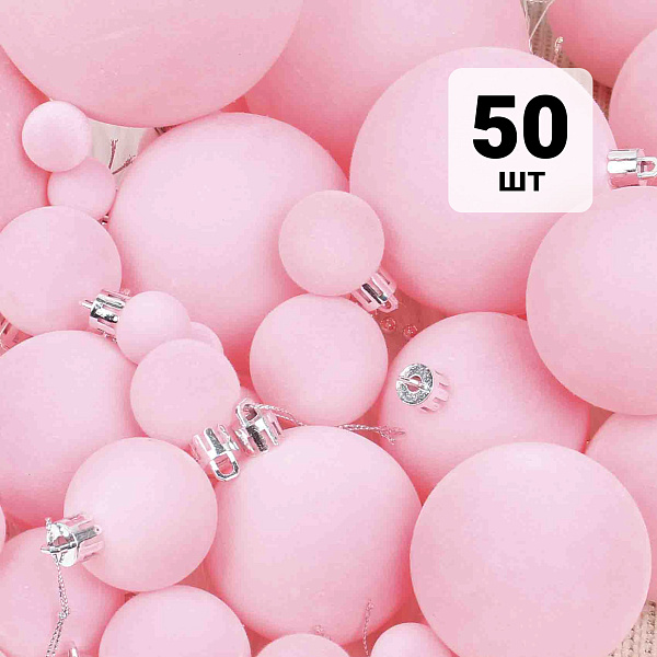 Набор новогодних украшений — нежный комплект из 50 шаров в розовом оттенке с велюровой фактурой диаметром от 2 до 10 см. Бархатистое покрытие придает шарам мягкость и изысканность, создавая в праздничном интерьере атмосферу уюта и тепла. Легкие пластиковые шары оснащены креплениями с петлями для удобного и надежного подвешивания на ёлке или в декоративных композициях. Этот набор станет прекрасным выбором для создания стильного и элегантного новогоднего декора, подчеркивая нежность и шик оформления.