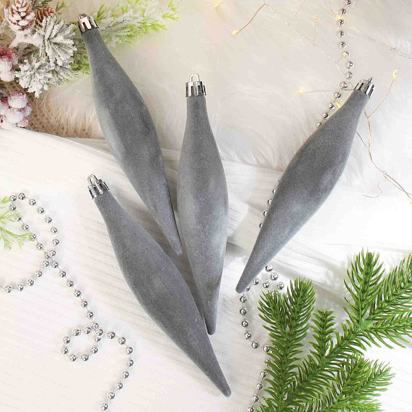 Набор елочных украшений Сосулька с бархатным покрытием серый 4шт 15см