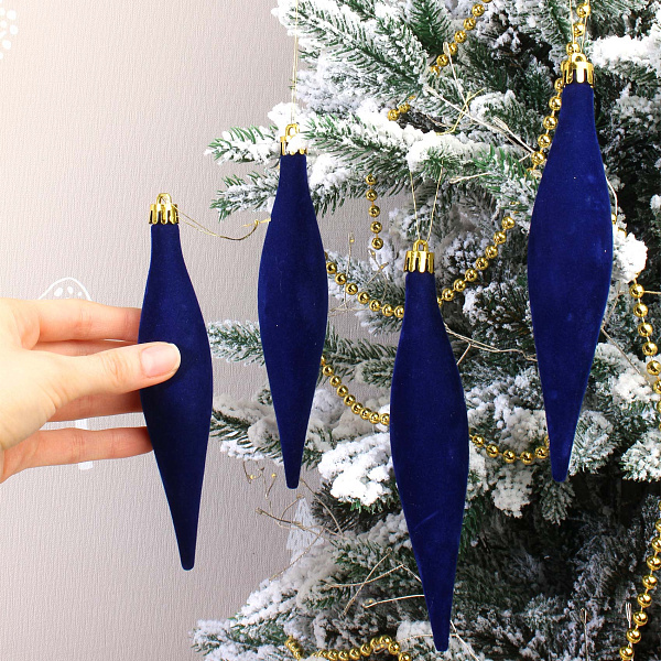 Набор елочных украшений Сосулька с велюровым покрытием синий 15см 4шт