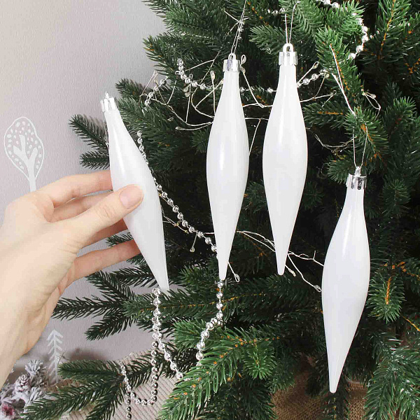 Набор елочных украшений Сосульки перламутровый белый 4шт 15см