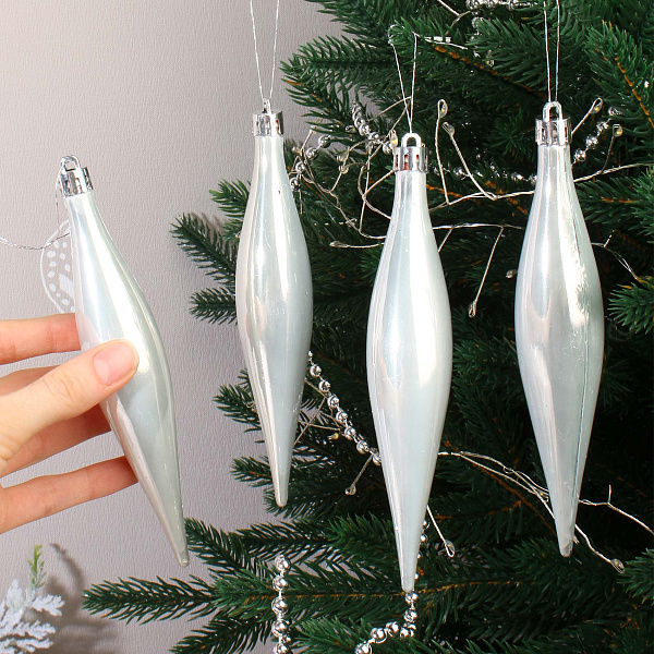 Набор из 4 елочных украшений в виде сосулек в светлом оттенке — элегантное дополнение для праздничного декора. Изготовленные из пластика, сосульки имеют длину 15 см и классическую удлиненную форму с плавными изгибами, что придает им изысканность и легкость. Перламутровая поверхность украшений создает мягкое мерцание, добавляя интерьеру глубины и праздничного настроения. Такие сосульки идеально подойдут для украшения новогодней елки, а также оформления зимнего декора, придавая ему торжественный и стильный вид.
