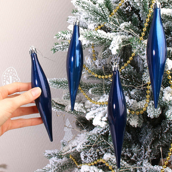 Набор елочных украшений Сосульки перламутровый синий 15см 4шт