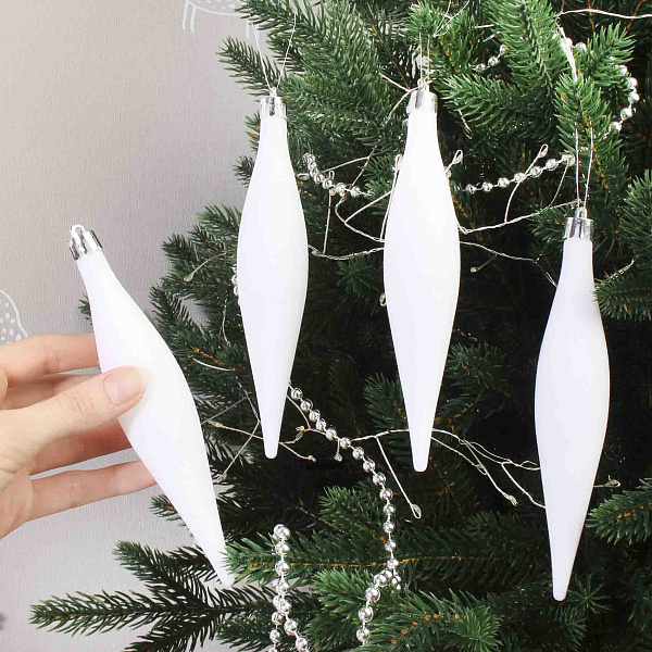 Набор елочных украшений Сосульки велюровый белый 4шт 15см