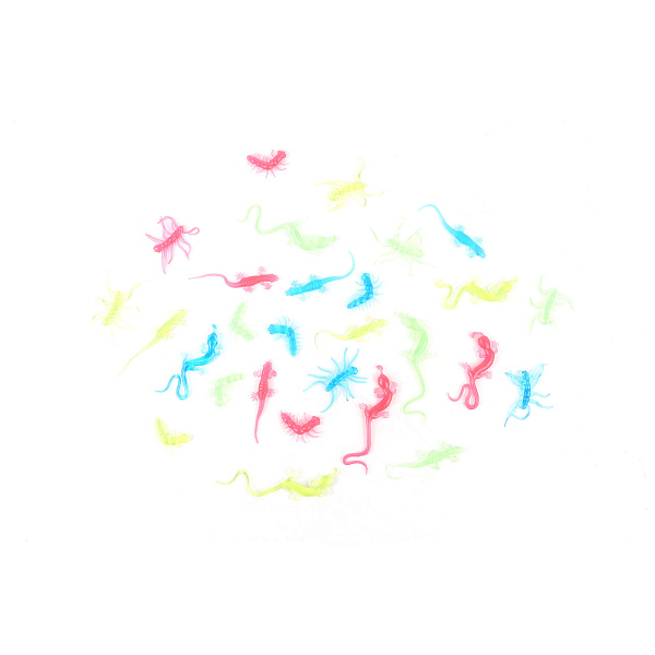 Фигурки радуют глаз почти всеми цветами радуги: зеленым, синим, желтым, красным. Они представляют собой 4 вида различных пресмыкающихся и насекомых.