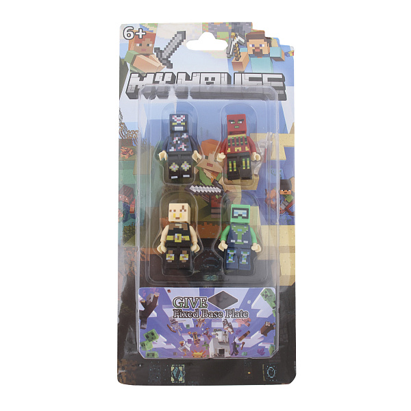 Набор фигурок «Пиксельные персонажи» состоит из четырех миниатюрных героев на отдельных подставках. Каждая фигурка имеет съемное оружие, что добавляет разнообразие в игру и помогает создавать разные сценарии.
