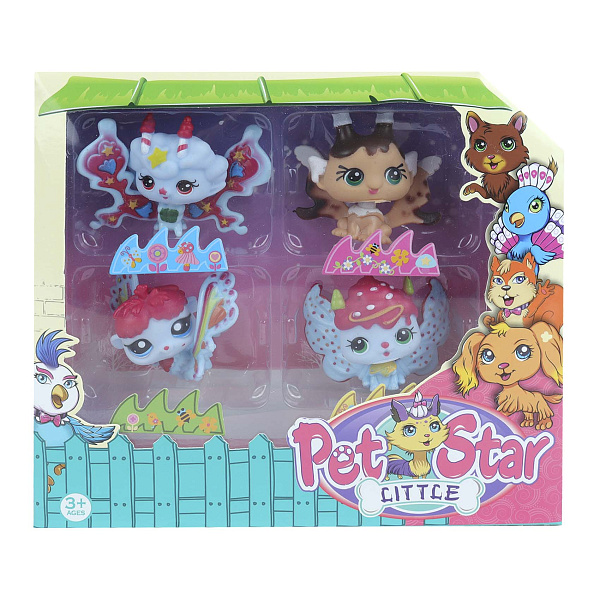 Набор миниатюрных фигурок животных включает четыре очаровательных персонажа, каждый размером 5 см. Яркие фигурки выполнены в виде фантастических животных с большими глазами и уникальными деталями.