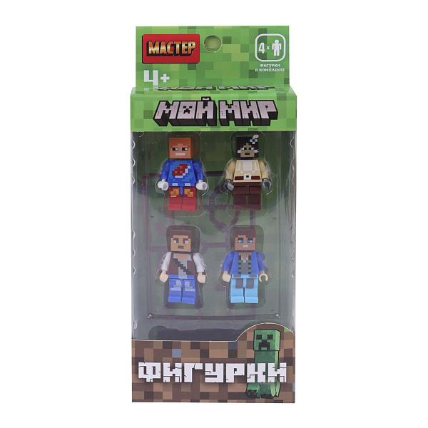 Набор фигурок «Персонажи» включает в себя 4 мини-фигурки персонажей, выполненных в стиле популярной пиксельной игры. Яркие и красочные фигурки имеют четкие контуры и детально проработанные элементы одежды и аксессуаров, что придает каждому персонажу уникальный внешний вид.