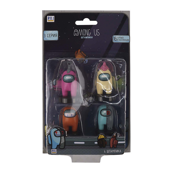 Набор фигурок-штампов Among Us «Герой-робот» включает четыре тематические фигурки. Каждая фигурка отражает внешний вид персонажей популярной игры, добавляя элемент веселья и узнаваемости.