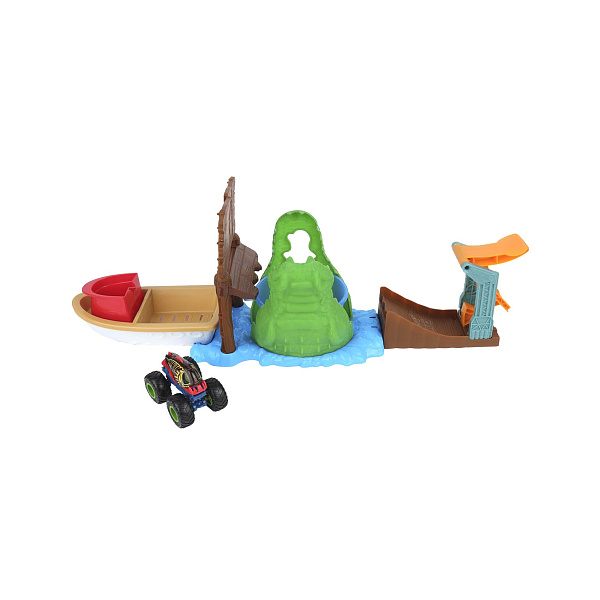Яркий интерактивный игровой набор от Hot Wheels «Монстр-трак. Болото» состоит из миниатюрного гоночного джипа на больших колесах. А также полосы препятствий со специальным пусковым механизмом. Машинка должна на скорости проехать через пасть аллигатора, чтобы тот не успел ее схватить. Сделать игру еще интереснее можно, добавив холодную и горячую воду в специальные резервуары на трассе. Под воздействием разных температур монстр-трак будет менять свой цвет.