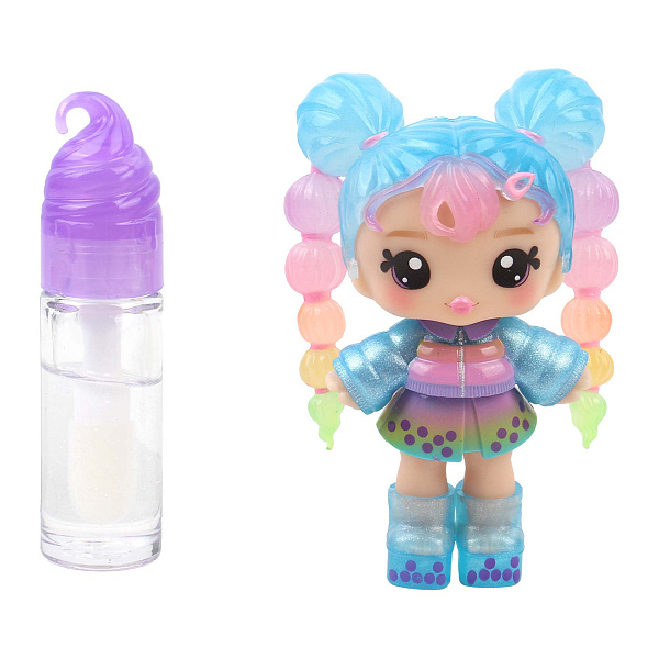 - Комплект: кукла, флакон для блеска, набор для смешивания.