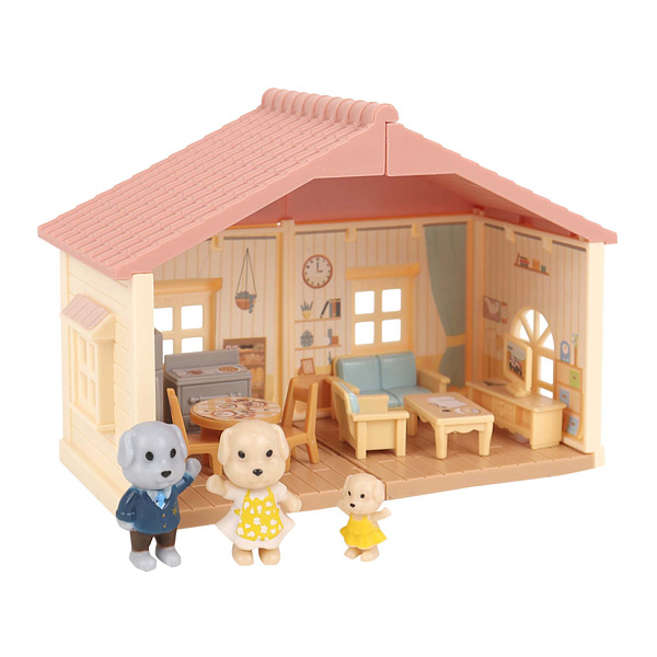 Игровой набор «Семейный домик» предлагает детям создать уютную атмосферу для семейных ролевых игр. В комплект входит коттедж, мебель для домика и три миниатюрные фигурки: родители и щенок в милом желтом платье.
