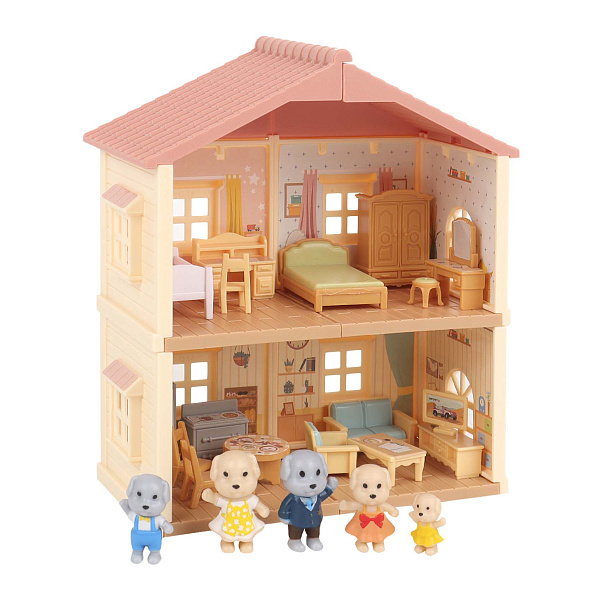 Игровой набор «Семейный домик» предлагает детям создать уютную атмосферу для семейных ролевых игр. В комплект входит двухэтажный коттедж, мебель для домика и пять фигурок: родители и трое щенков в милых нарядах.
