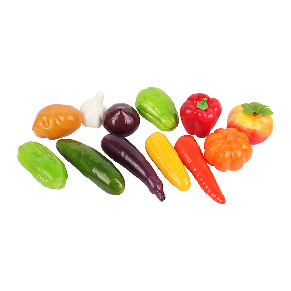 Игровой набор овощей и фруктов из 12 реалистичных пластиковых фигурок станет отличным дополнением для детской кухни или магазина. В набор входят самые популярные и узнаваемые продукты: огурец, картофель, морковь, кукуруза, баклажан, чеснок и так далее. Каждая фигурка выполнена из прочного и безопасного для детей пластика, окрашенного в яркие цвета, повторяющие натуральные оттенки фруктов и овощей.