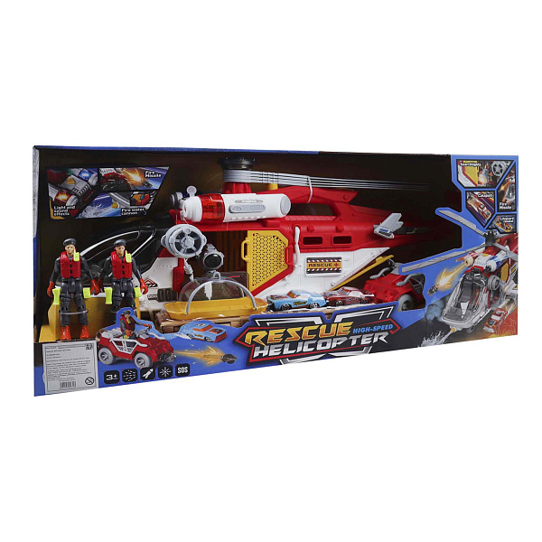 Игрушка яркая и красочная. У вертолета есть поисковый прожектор, а машины могут выезжать из гаража. Возраст детей от 3 лет. Набор развивает фантазию и ловкость рук.