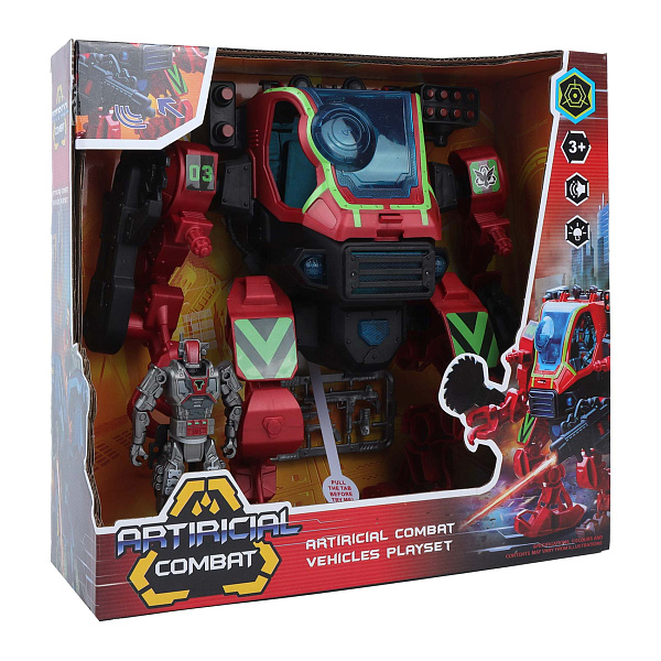 Изготовлен набор из прочного пластика, обеспечивающего долговечность и безопасность при игре. Робот оснащен световыми и звуковыми эффектами, которые активируются в процессе взаимодействия, создавая атмосферу настоящего боевого действия. Батарейки для работы эффектов в комплект не входят