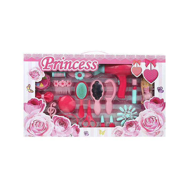 Игра порадует маленьких модниц, которые обожают приводить в порядок кукольных подружек. В комплекте их ждет новая кукла с длинными светлыми волосами в длинном розовом платье. Девочки также найдут в наборе все необходимые инструменты для парикмахера–стилиста: расческу, фен, бигуди, щетку, ножницы, заколки, гребень, помаду, лак для ногтей и другие предметы. С таким арсеналом открытие салона красоты не за горами!
