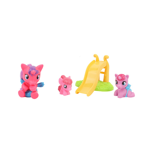 Тематический набор порадует любого ребенка старше 3 лет. В него входят фигурки сказочных пони и горка для них. Игрушки надолго завладеют вниманием девочек и мальчиков, помогут хорошо провести время.