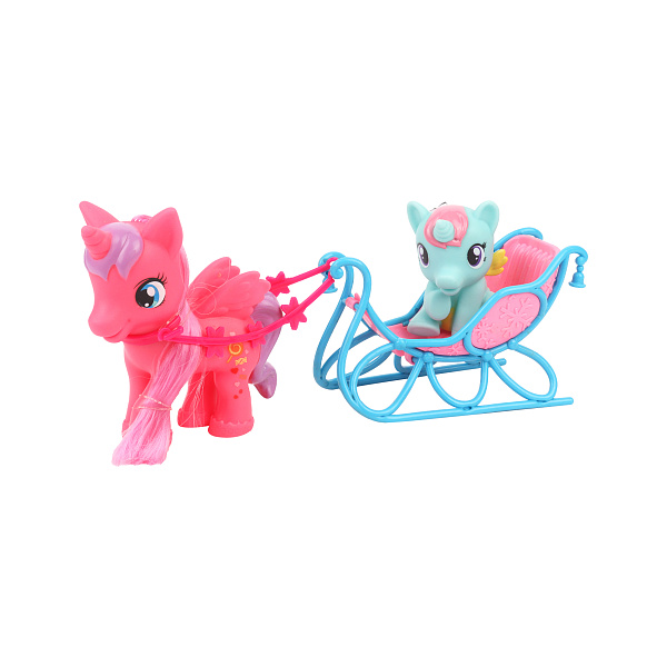 Желанным подарком для любителей популярного мультфильма станет тематический игровой набор. В него входят 2 фигурки пони разного размера и стильные сани. Игрушки надолго займут внимание ребенка, поднимут настроение, станут источником вдохновения.