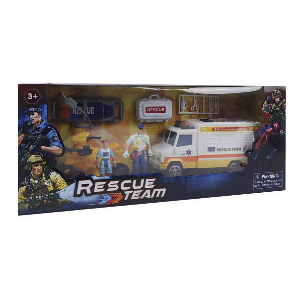 Игровой набор воссоздает работу команды спасателей. В комплекте присутствует машина экстренной помощи с носилками. Две фигурки спасателей готовы к выполнению заданий. Мотоцикл позволяет быстро добираться до нужного места. Чемоданчик содержит медицинское оборудование для оказания помощи. Все элементы набора дополняют друг друга. Это позволяет разыгрывать разнообразные сценарии спасения. Игра развивает фантазию и знакомит с профессиями.