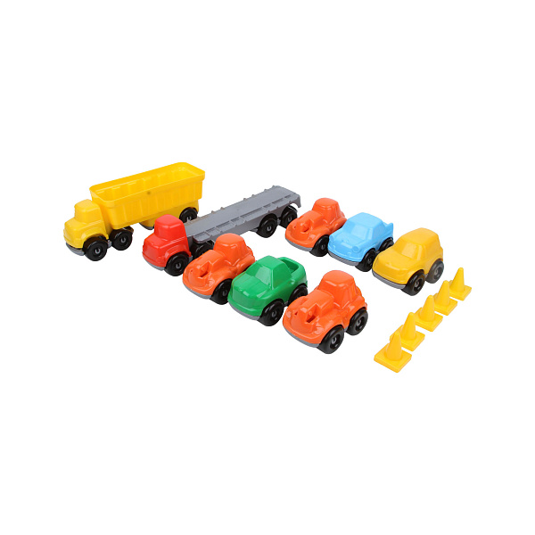 Набор для сборки 8 специализированных автомобилей будет с восторгом принят мальчиком дошкольного возраста. В коробке ребенок найдет дорожные конусы и 72 детали для сборки грузовика, трала, самосвала, легковушки, спецтехники. Все игрушки имеют обтекаемую форму и привлекают внимание сочными цветами.
