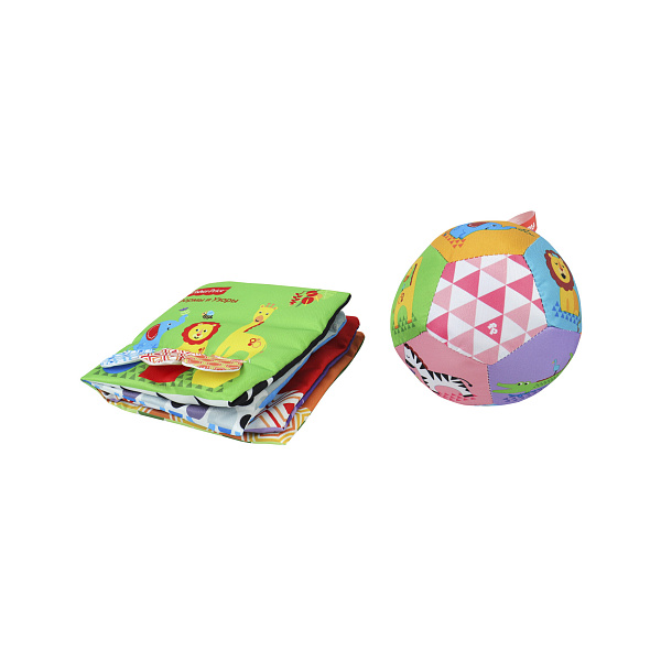 Набор «Книжка-игрушка» вместе с мягким мячиком предназначен для детей старше 3 месяцев. Изделия приучают детей к чтению и выполнению занимательных заданий. В комплекте представлены красочная шуршащая книжечка, каждая страничка выполнена в ярком цвете, покрыта текстильным материалом и рассказывает о животных. Низ страниц украшен узорами. Мячик погремушка мягкий на ощупь, каждая его грань раскрашена в тон страничкам. Игра с набором развивает логическое мышление, расширяет кругозор, слух и память.