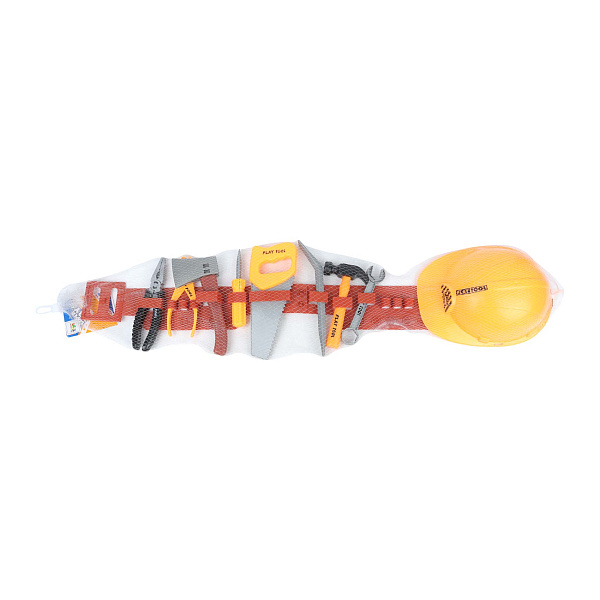 В набор входят пластиковые модели наиболее популярных инструментов: плоскогубцы, ножовка, молоток, отвертка, топор, ключ, лом и защитная каска. Инструменты выполнены из безопасного пластика, имеют удобный размер для маленьких рук и яркий дизайн.