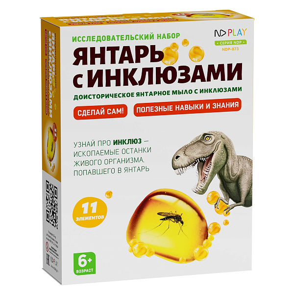 Исследовательский набор Янтарь с инклюзами. С набором «Янтарь с инклюзами» вас ждет простая и уникальная техника изготовления необычного мыла своими руками, которая соединила в себе благородство янтаря и красоту природы. Из инструкции ребенок узнает много интересного про инклюз – ископаемые останки живого организма, попавшего в янтарь.