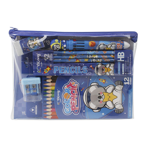 Набор канцелярский Yalong 6предметов в прозрачном пенале с застежкой