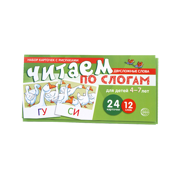 Набор карточек Читаем по слогам Двусложные слова 24шт с 4-7лет