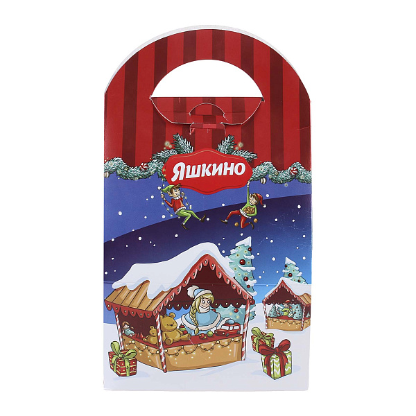 Подарочный набор «Сумочка со змейкой» весом 700 грамм отличается праздничной и яркой упаковкой. Дизайн выполнен в зимней тематике с изображениями Деда Мороза и новогодних элементов, что делает его идеальным выбором для праздничных сюрпризов.