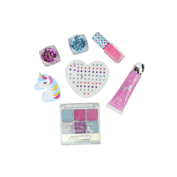 Косметический бьюти-набор «Единорог» превратит ребенка в сказочную принцессу. В комплект входят 2 баночки с гель-блестками, ароматный блеск для губ «Сверкающая звезда» с запахом конфет, пилочка для ногтей, лак для ногтей с ненавязчивым ароматом клубники, стразы-наклейки для ногтей и крем-тени для век (6 цветов). Дополнительно к теням прилагается аппликатор. Тени для век дополнены блестками, которые легко ложатся на кожу и не осыпаются. Набор детской косметики с ранних лет приучает ребенка к уходу за собой, а родителям позволяет разом составить первую детскую косметичку. Рекомендовано для детей с 5 лет.