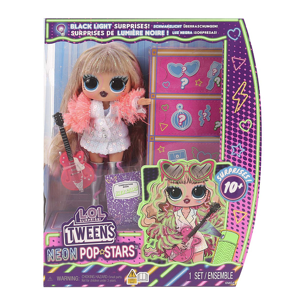 Кукла L.O.L. Surprise Tweens Neon «Тиа Старс» впечатлит ярким внешним видом и современной стилистикой. Миниатюрная фигурка обладает выразительными чертами лица, дополненными крупными блестящими глазами. Длинные светлые волосы украшены стильными локонами, а наряд выполнен в неоновых оттенках, которые подчеркивают принадлежность к миру поп-музыки.