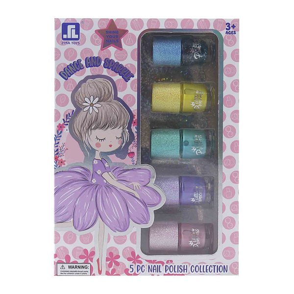 Набор лаков Zyra Toys на водной основе с блестками 5цв с 3лет