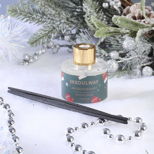 Аромат сочетает теплые и пряные ноты, создающие атмосферу уюта и праздника. В комплект входят палочки, которые равномерно распределяют аромат по пространству, обеспечивая продолжительное и устойчивое благоухание.