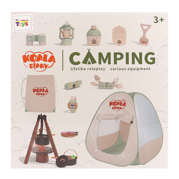 Отличным развлечением для ребенка старше 3 лет станет походный набор. В комплект входит палатка, тренога с котелком и имитацией костра, керосиновая лампа, фонарик, бинокль, многофункциональный складной нож, лопата, емкости для хранения, посуда и столовые принадлежности. Игрушки удивляют реалистичным дизайном, способны надолго завладеть внимание детей.