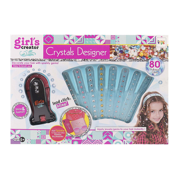 Набор для украшения стразами Crystals Designer – это творческий комплект, который включает в себя 80 блестящих страз различных цветов и форм, шаблон и удобный аппарат для наклеивания.